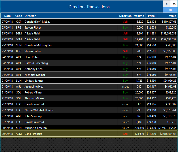 See significant transsactions made by the heads of the ships their steering. The top 20 listings for directors transactions made on the Stock Market. Is a director buying into their company, bailing out, or simply need a holiday fund?
